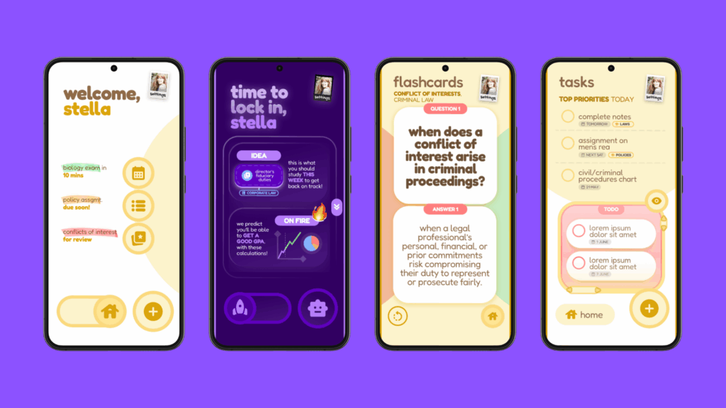 various screens of the app